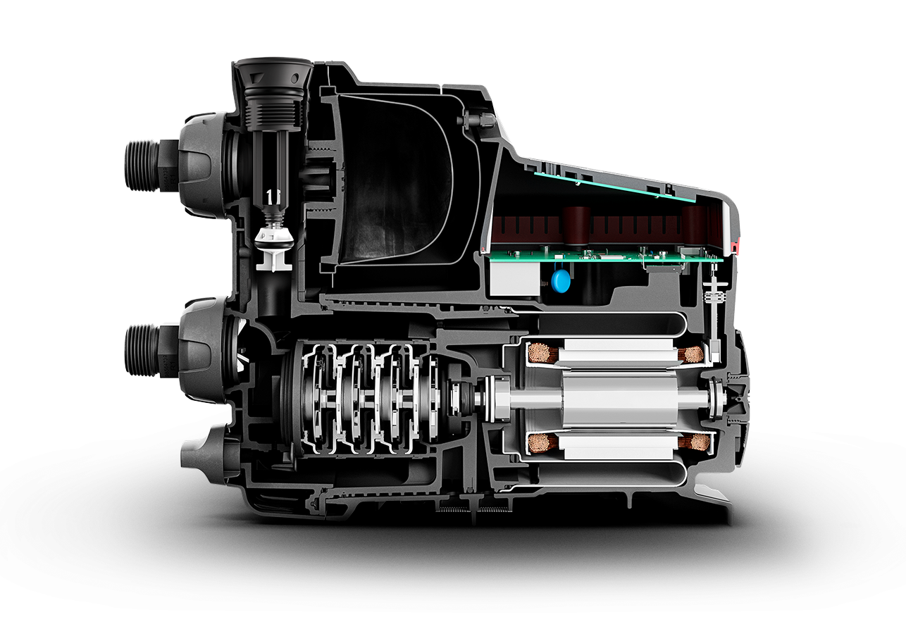 Spitsuur in huis? Geen probleem met de toerengeregelde SCALA2 drukverhoger! Deze zet namelijk zelf een tandje bij wanneer dat nodig is. Staan alle kranen uit? Dan doet de SCALA2 niets. Dit maakt de SCALA2 een stuk energiezuiniger. De SCALA2 is bovendien voorzien van een watergekoelde motor die super stil in gebruik.