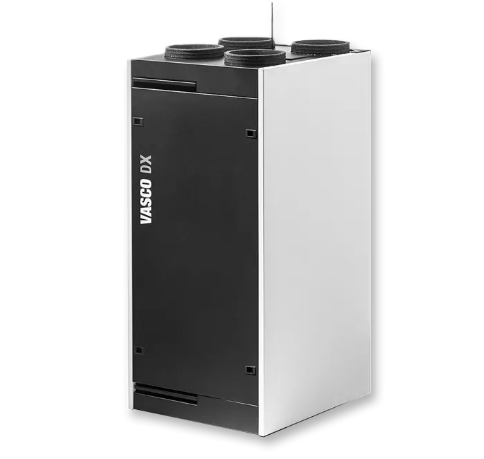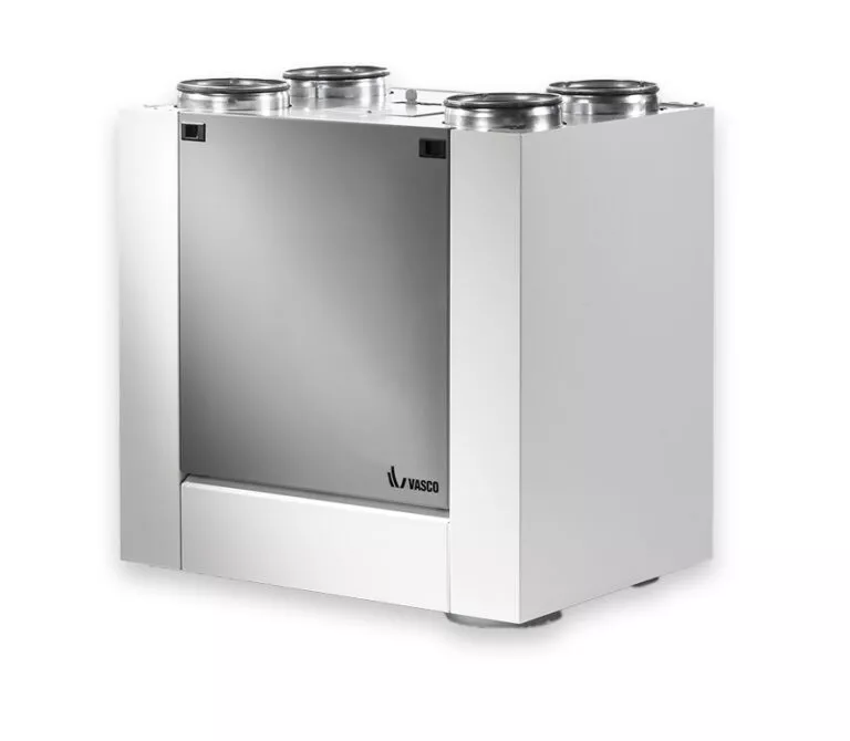 Een uniek kenmerk van de Vasco DX6-serie, is dat de apparaten zowel horizontaal als verticaal gemonteerd kunnen worden, en aansluitingen hebben aan zowel de boven- als onderzijde van het toestel. Dit laatste is ook het geval bij de T350 en T500, de hardlopers van Vasco in Nederland. Het assortiment is nóg veelzijdiger: Vasco biedt WTW-units met een capaciteit van 150 m3 per uur voor kleine studio’s, compacte units voor kleine appartementen en renovatieprojecten en krachtpatsers als de T350, T500 en DX-series. Daarnaast biedt Vasco ook Energy Plus-systemen, voor kleinschalige utiliteit.