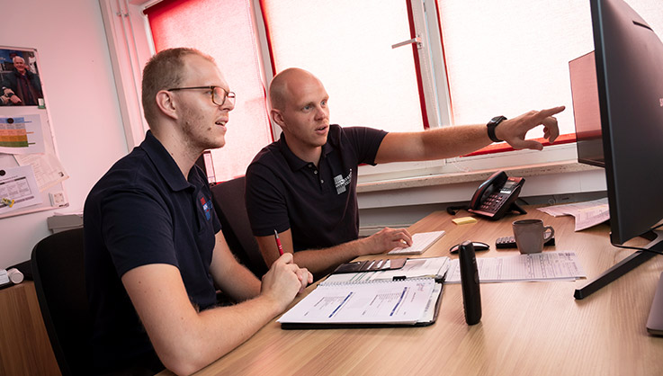 Matthijs heeft wat langer gestudeerd. Na de havo ging hij naar de Haagse Hogeschool om Bedrijfskunde te studeren. Deze studie heeft hij succesvol afgerond. “Aangezien er op ons kantoor dringend iemand nodig was die de administratieve taken op zich nam, ben ik op die stoel gaan zitten”, aldus Matthijs. “Vanaf dat moment ben ik steeds meer taken op me gaan nemen. Momenteel ben ik fulltime bezig met alles wat met cijfers te maken heeft. Het is een bewuste keuze om verder geen verantwoordelijkheden te hebben binnen het bedrijf. Voorlopig zit ik zo prima op mijn plek; we zullen zien wat de toekomst brengt. Hier staan we als tweelingbroers gelukkig samen achter.”